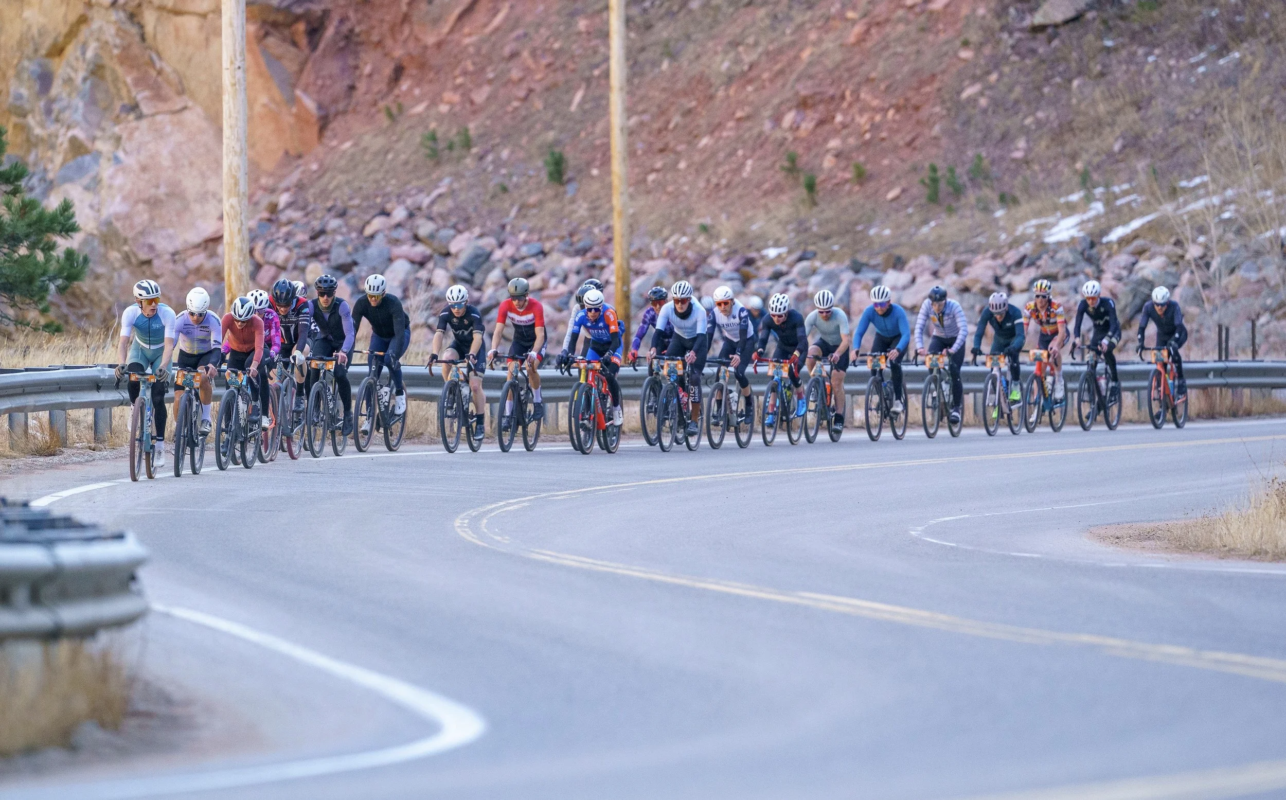 This is a new event for 2026. Road riders deserve some fun too, right?! You’ll climb up Lefthand Canyon to Peak to Peak Hwy , then plunge down South St. Vrain/Hwy 7 all the way back to the party in Lyons. It will be a continuously timed loop and a beautiful ride!